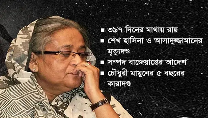 জুলাই গণ-অভ্যুত্থানকে কেন্দ্র করে সংঘটিত মানবতাবিরোধী অপরাধের মামলায় শেখ হাসিনা ও সাবেক স্বরাষ্ট্রমন্ত্রী আসাদুজ্জামান খান কামালের মৃত্যুদণ্ড একটি ঐতিহাসিক রায়